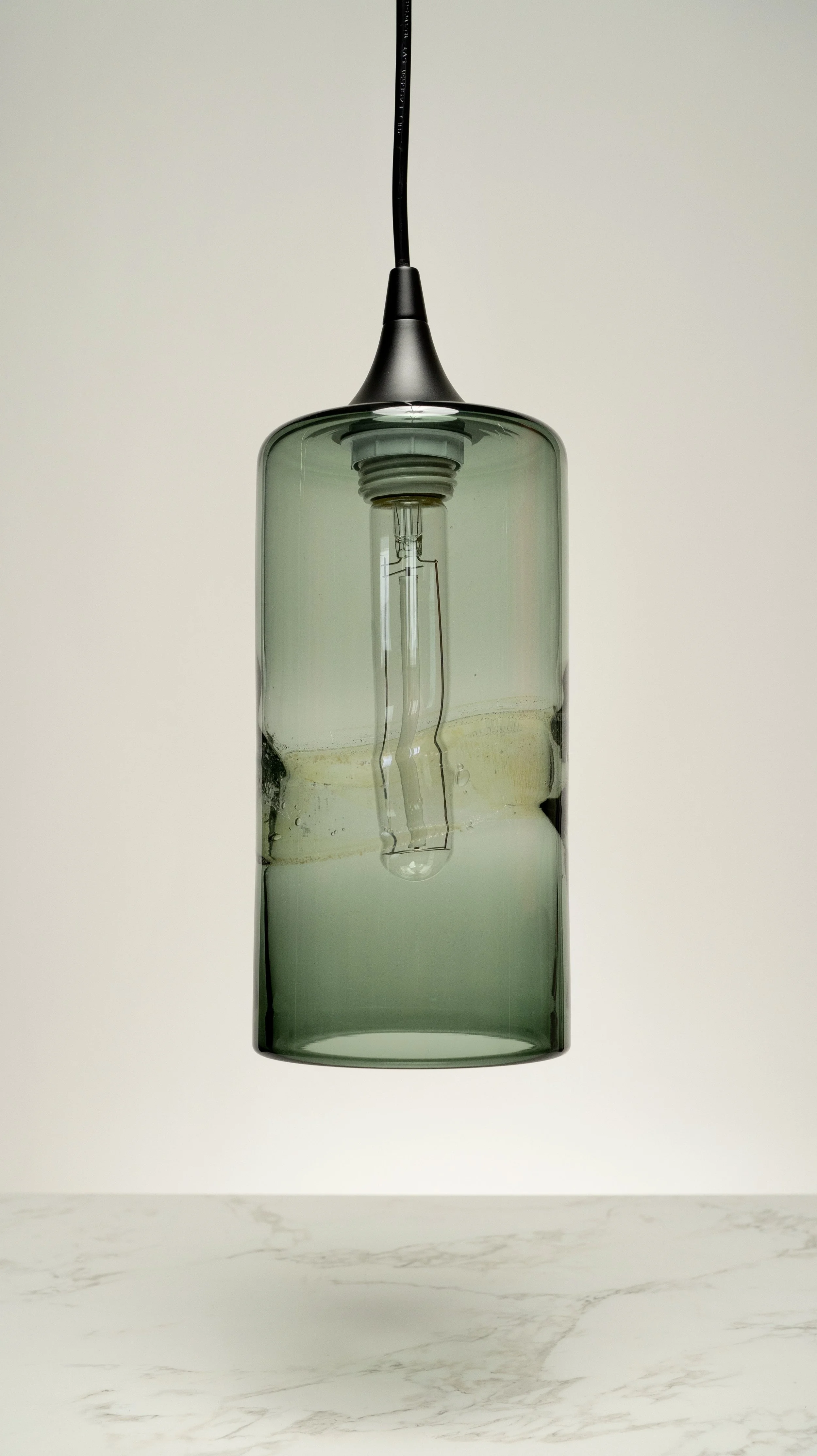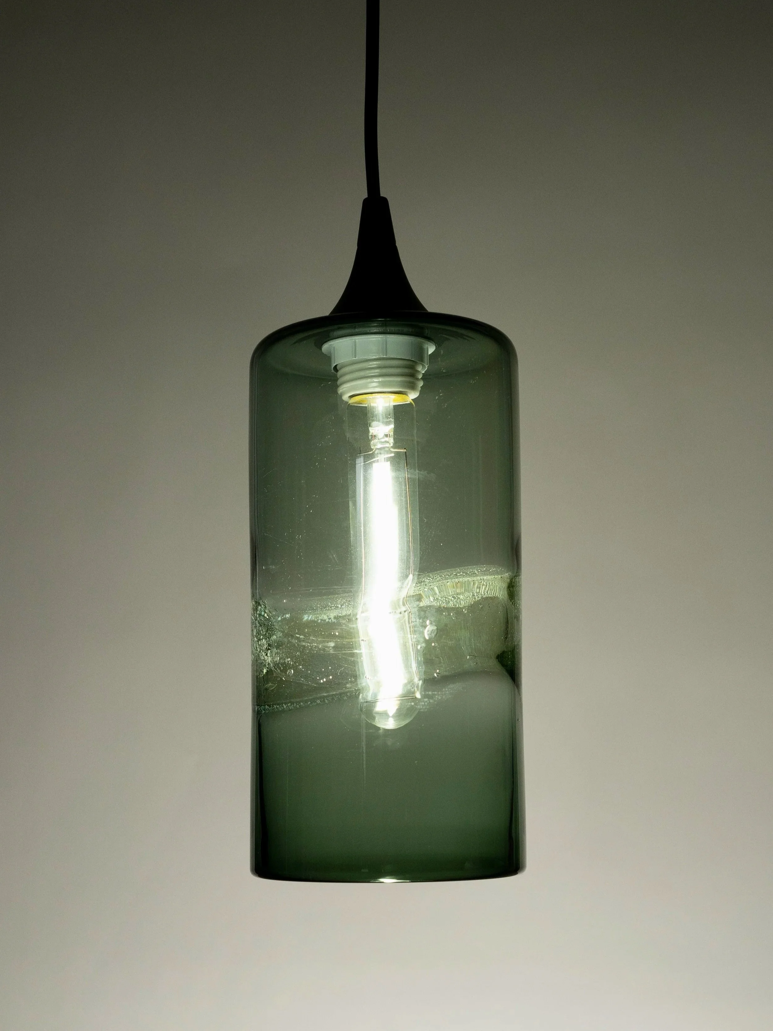Our Optic Pendant Series is a simple, yet complex design, that fits into a multitude of home designs. Using an optic mold to create the texture, these shades transform from a molten bubble, to a steel patterned form, holding the memory of its previous life. This design is available in our five shapes: Cylinder, Cone, Sphere, Bell, and Bean.